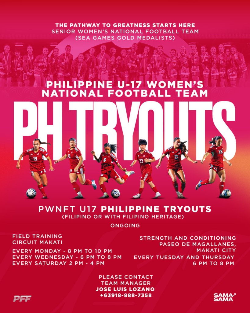 The Philippine Football Federation (PFF) has announced the conduct of official talent identification tryouts for the Philippine under-17 women’s national football team in the Philippines and the United States as part of its continuing efforts to strengthen the long-term development pathway for Filipina footballers and in preparation for the upcoming AFC U17 Women’s Asian Cup in China in May 2026.