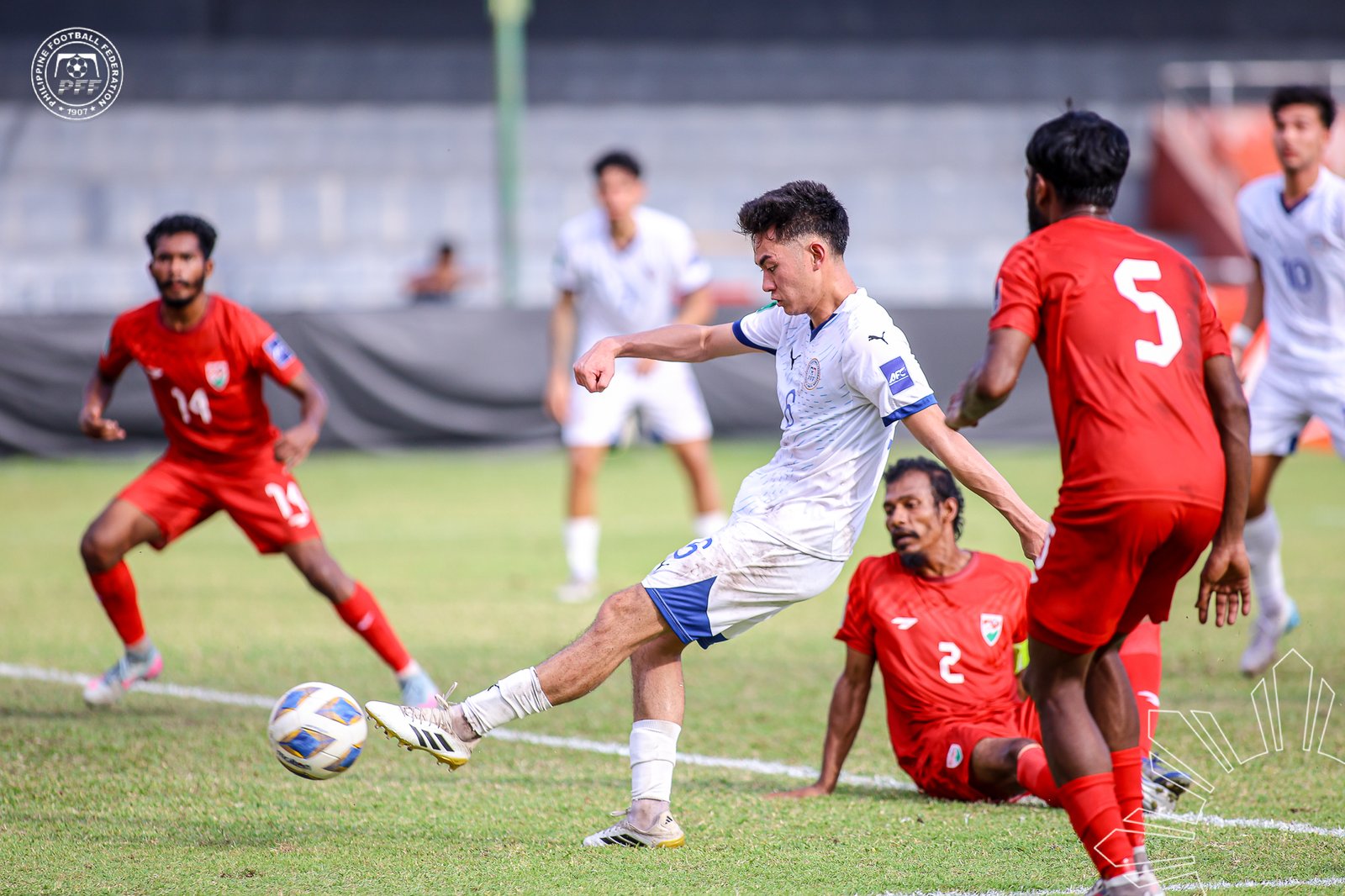 Despite Maldives having a couple of second opportunities, particularly a unmarked attack by Naiz Hassan that was botched by goalkeeper Kevin Ray Mendoza in the 50th minute and a narrow miss by Ali Fasir in the 85th minute, the Filipinos controlled the match from kickoff.